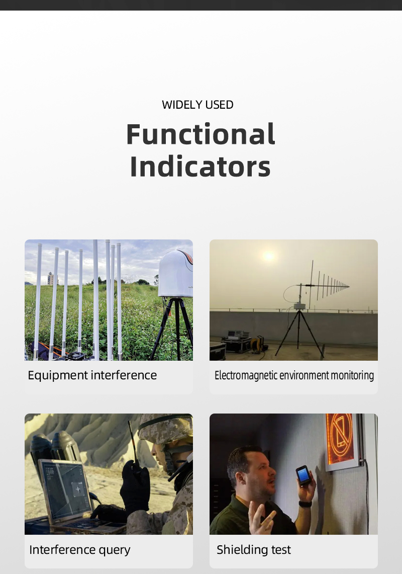 The portable electromagnetic spectrum monitoring receiver is designed for tasks such as signal search, radio monitoring, eavesdropping detection, security investigation, and interference verification. It can complete tasks such as signal analysis, demodulation analysis, and spectrum storage.