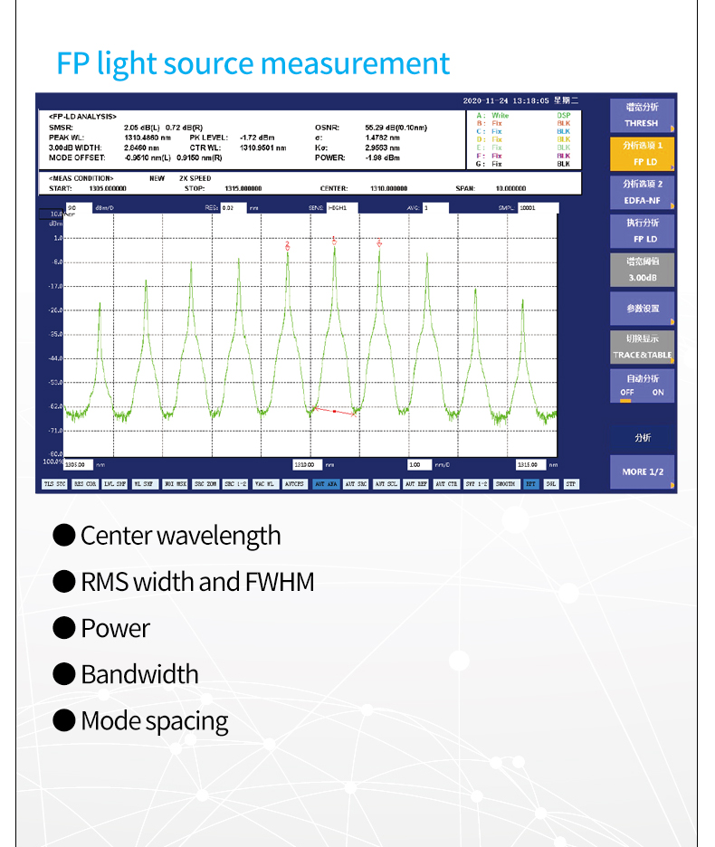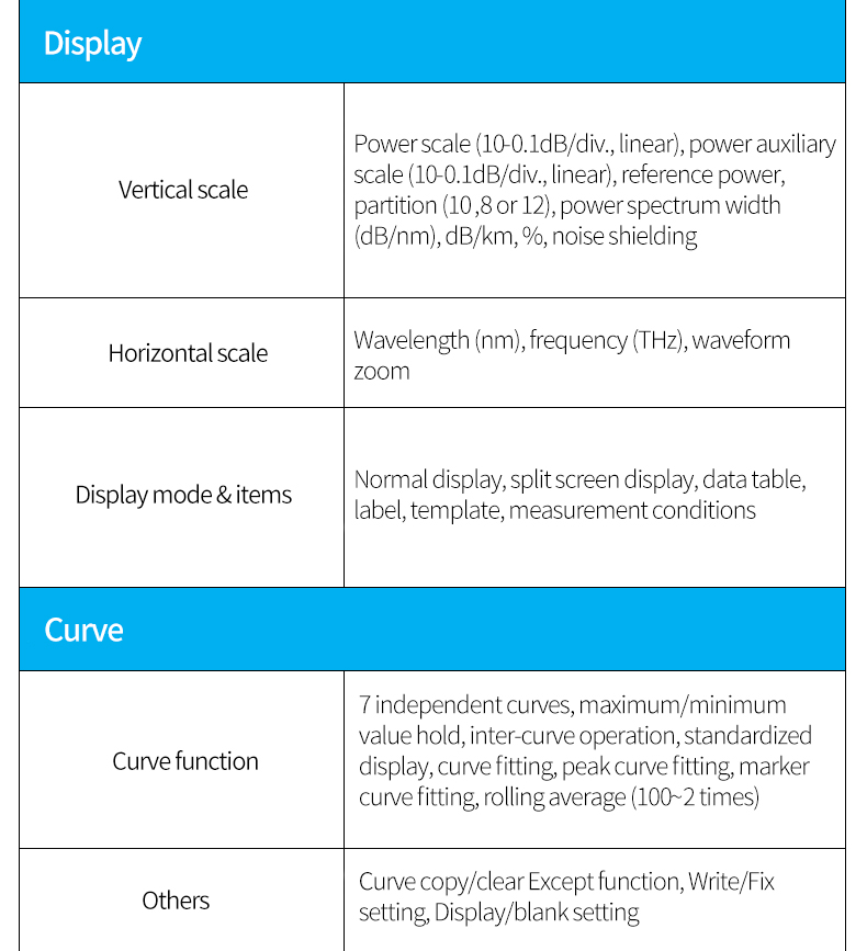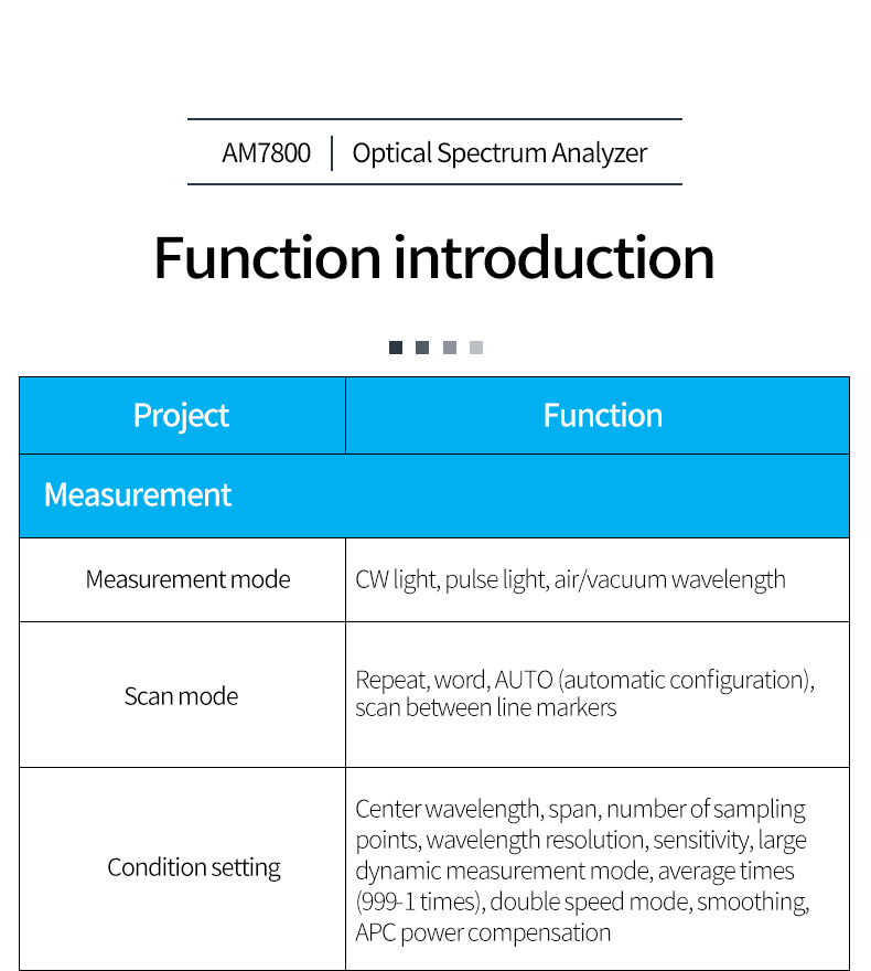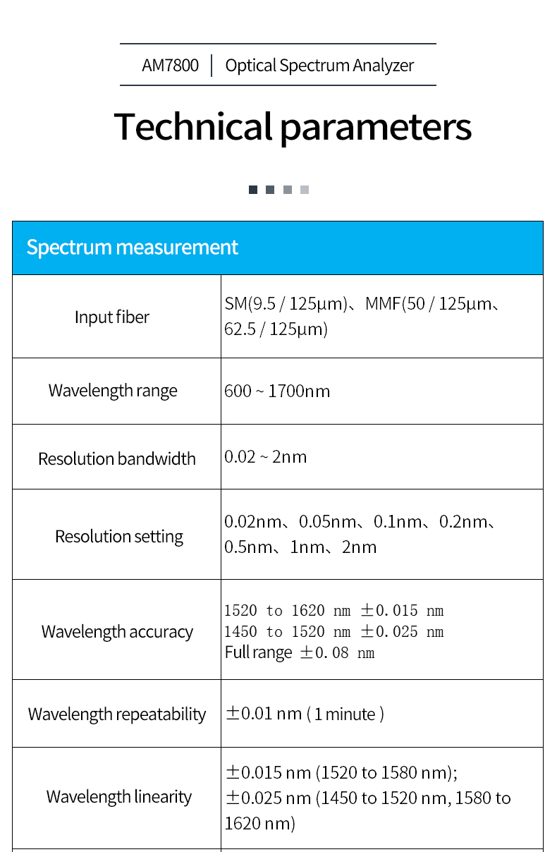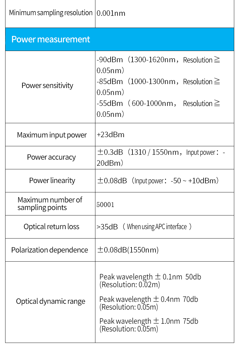 7 wavelength resolution settings 20pm-2nm, allowing users to choose the best value according to test needs