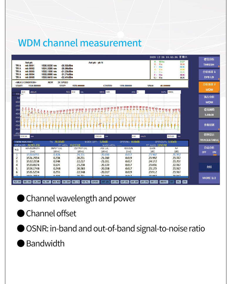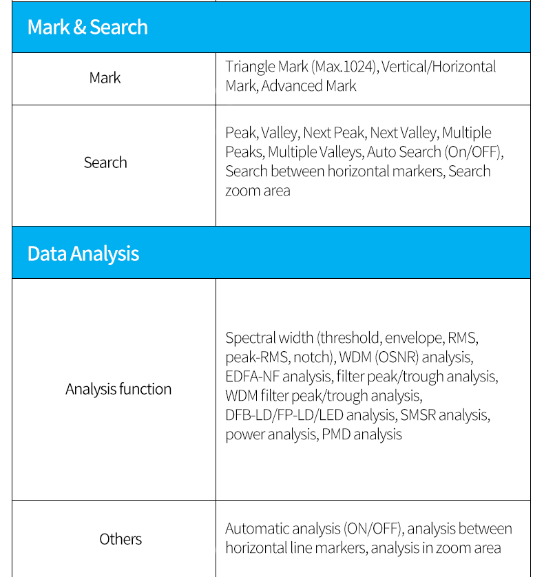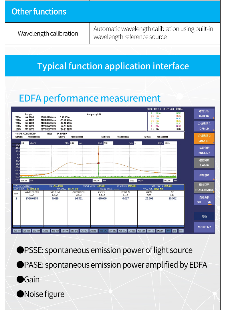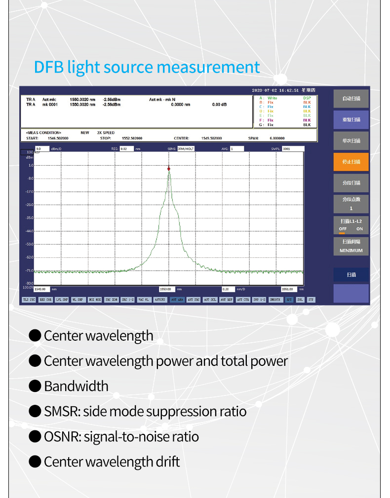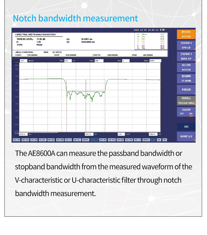 7 wavelength resolution settings 20pm-2nm, allowing users to choose the best value according to test needs