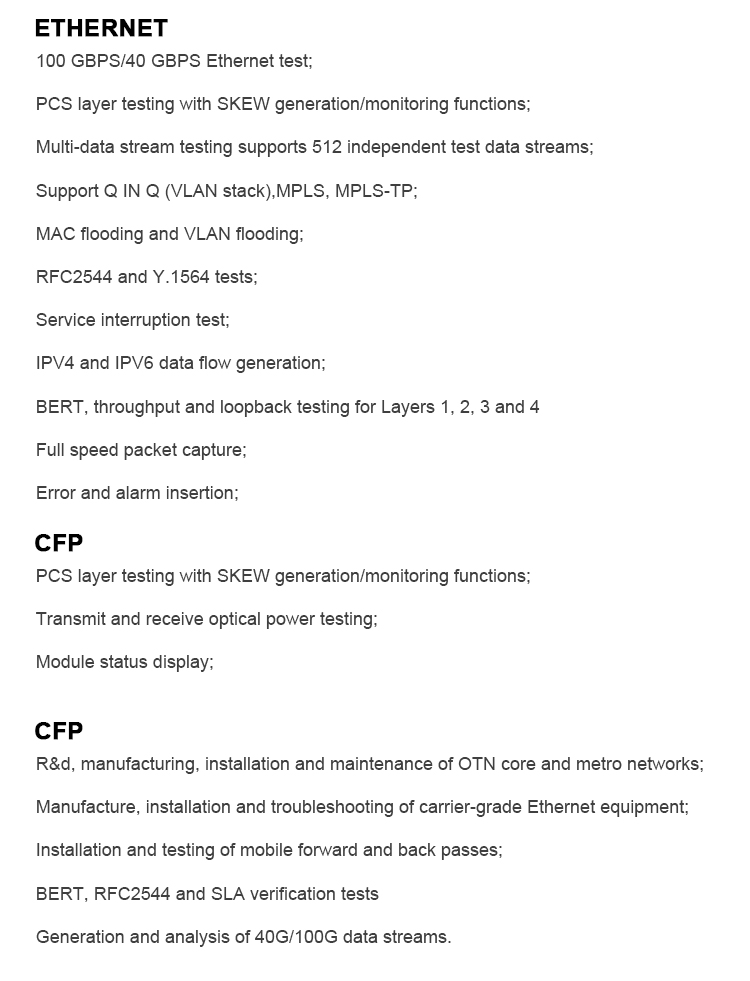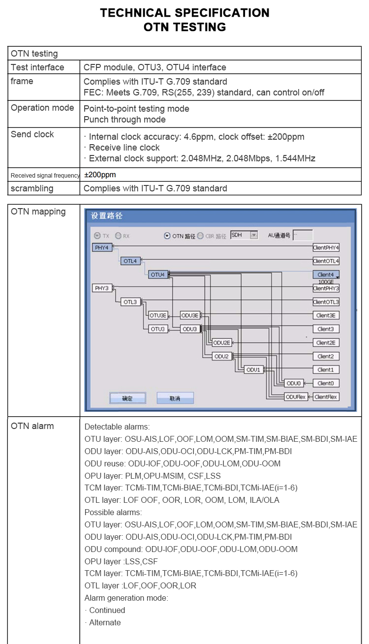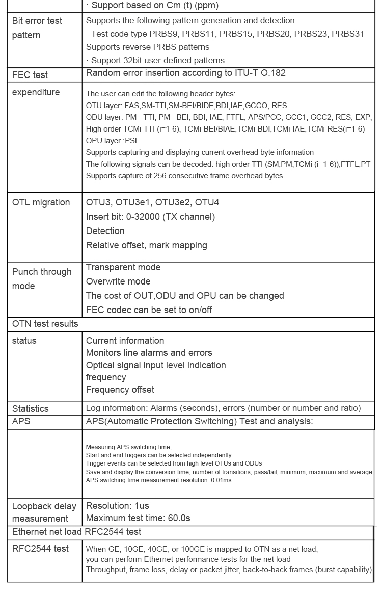 2. Support SDH/SONET test function for STM-1/OC-3 electrical port, STM-1/OC-3 optical port