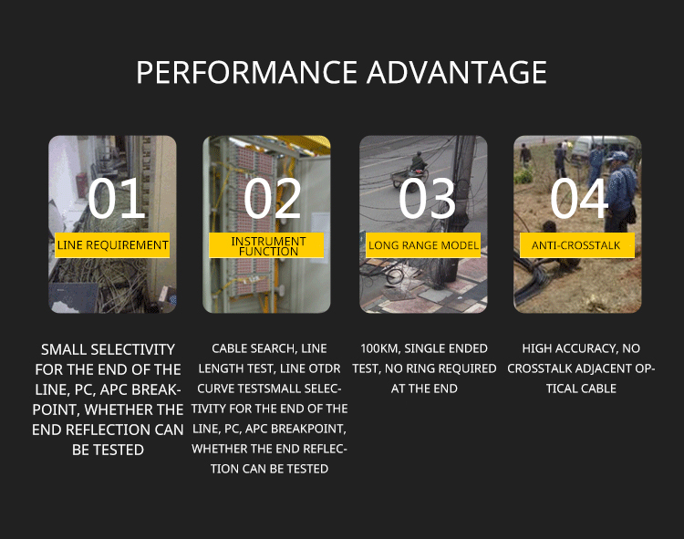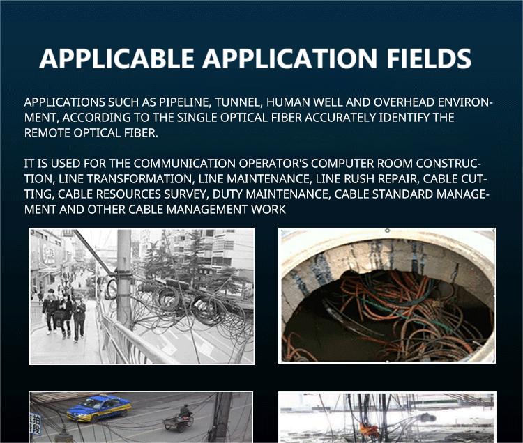 TFN GP150 optical cable identifier has stronger environmental adaptability, especially when the tested optical cable line is broken, it can accurately find the tested optical cable. In addition, in the line inspection of the optical cable line with APC connector at the end, TFN GP150 can also easily find the target optical cable.