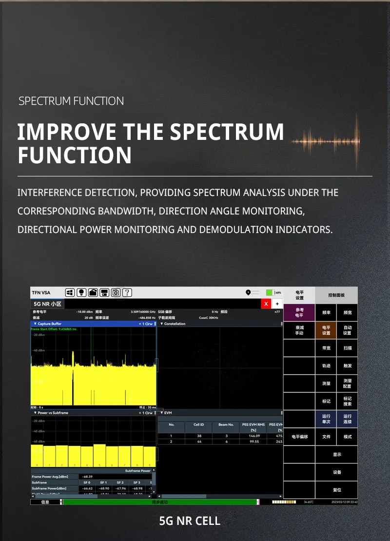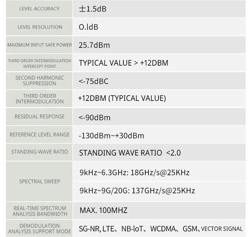 5. It has the demodulation and analysis function of various mobile communication systems such as 5GNR/TDD-LTE/FDD-LTE/NB-loT/WCDMA/GSM;