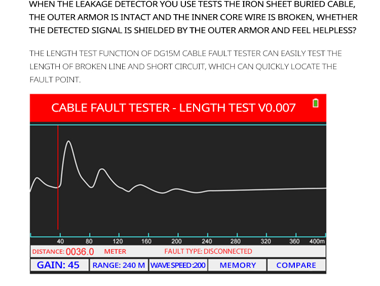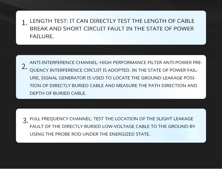 2, with length test function: support the test cable line breakage, short-circuit distance; can also test the total length of the cable line.