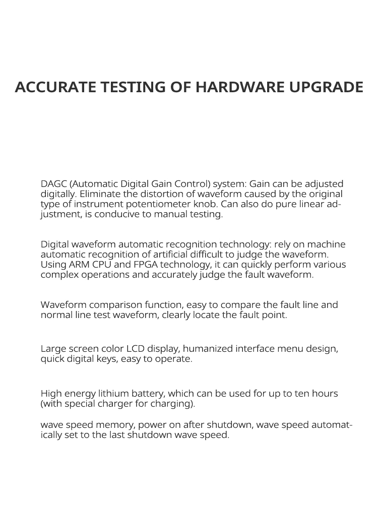 1. DAGC (digital gain automatic control) system: can digitally adjust the gain. Eliminate the original instrument of the same type due to potentiometer knob causes waveform distortion. It can also do pure linear adjustment, which is conducive to manual testing.