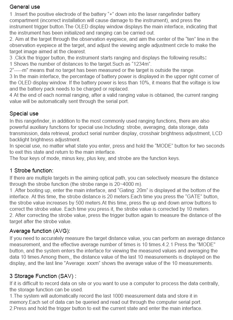 5. Ranging range: 30-5000m, 8000m, 10000m, 15000m, 20000m (optional).