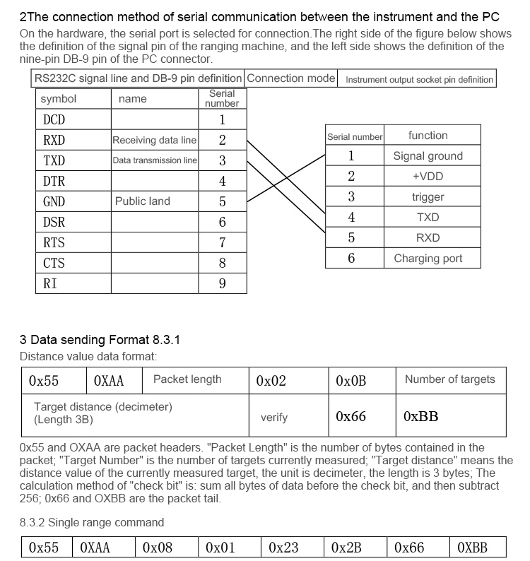 11. Measurement data sending (output interface: RS232 serial port, 115200, 8, N, 1)