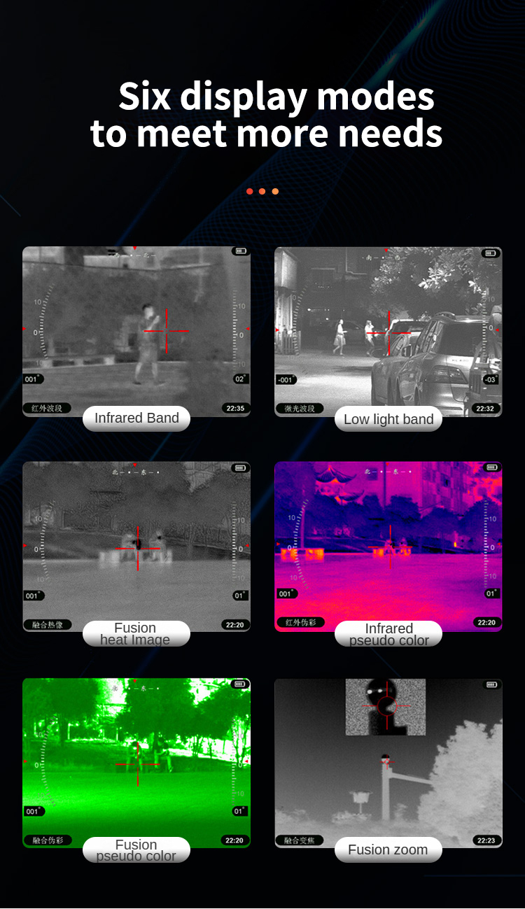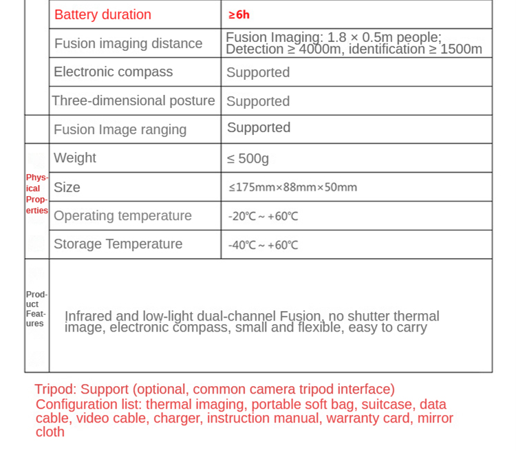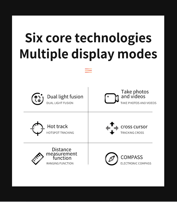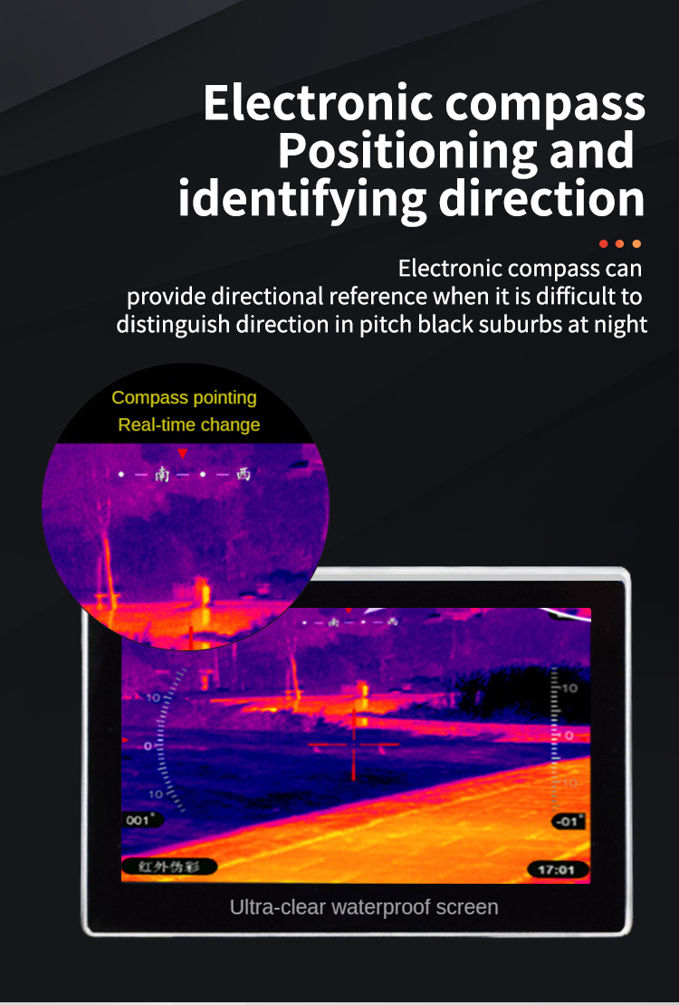6. Infrared and micro-optical dual-channel fusion, shutterless thermal imaging, electronic compass, compact and flexible, easy to carry.