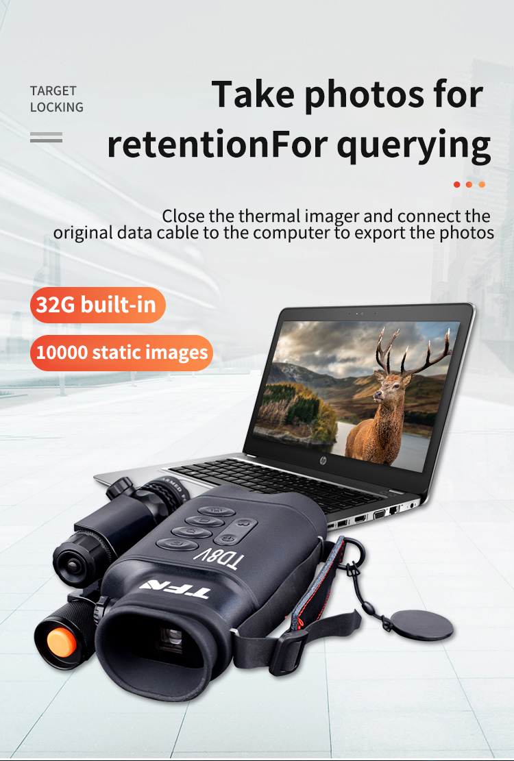 TFN TD8V (with video function) dual-optical fusion thermal night vision camera is the most important feature of the face recognition function, ordinary thermal imager can only see the blurred human form, and TFN TD8V dual-optical fusion thermal night vision camera can see the human face, know the real face. It is a dual-optical fusion product that combines thermal imager and night vision device, which comes with the function of distance measurement is based on the electronic compass meter and azimuthal distance measurement inside.